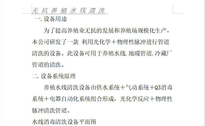 清洁消毒设备的专职企业。该公司的繁殖水线清洁设备冲破了传统的水线清洁