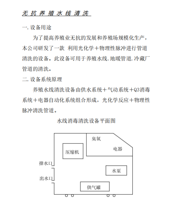 清洁消毒设备的专职企业。该公司的繁殖水线清洁设备冲破了传统的水线清洁