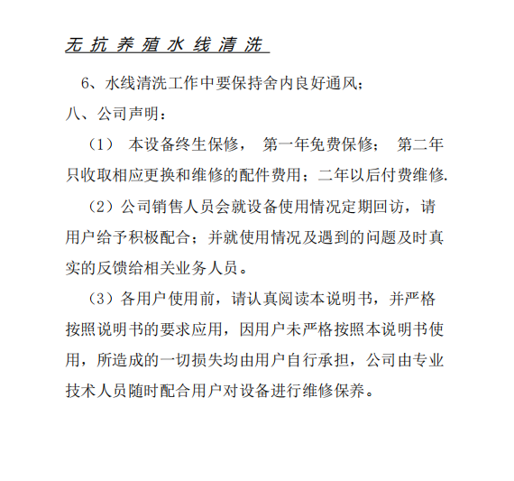源安全,关切水安全”的服务理念,致力于畜禽合作社供水管道的消毒和清洗